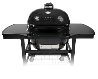Our most popular ceramic grill, and no wonder. It offers the largest cooking area and the patented oval shape offers superior cooking efficiency and accessibility. Grill, bake, roast or smoke any food. Grill shown with Primo Grill Cart and 1-Piece Island Top.