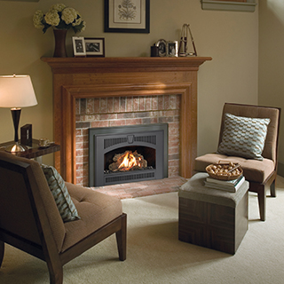 The 32 DVS features the Ember-Fyre™ burner and high-definition log set, or the Dancing-Fyre™ burner with your choice of log set. It also offers a variety of face designs and fireback options to choose from.